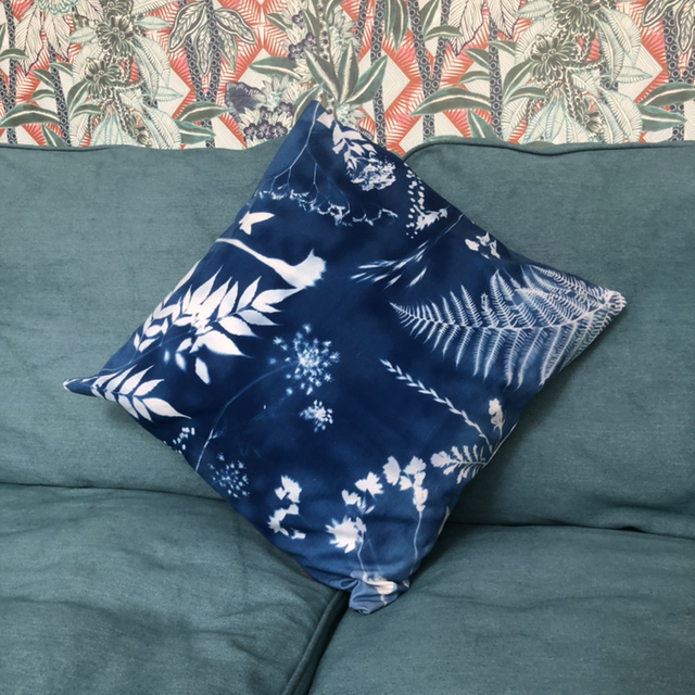Coussin cyanotypé (upcyclé)
