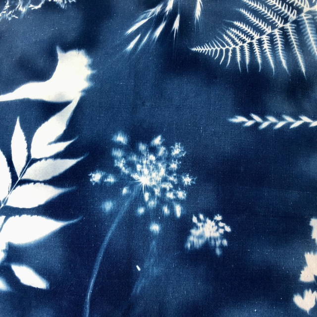 Le cyanotype est un procédé d'impression photographique découvert en 1842 par le chimiste britannique J. Herschel. En mélangeant deux molécules de fer il obtient une solution photosensible qui permet d'archiver la forme d'objets exposés aux UV. Sa fille Anna Atkins utilise le cyanotype pour créer le premier herbier au monde composé de vraies plantes et non sur des dessins.